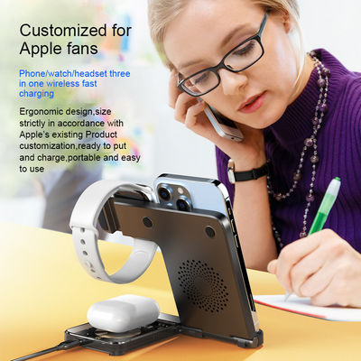 این شارژر بی سیم 3 در 1 می تواند متناسب با نیازهای نام تجاری شما سفارشی شود. همچنین می تواند به عنوان یک باتری خارجی ایمن از مغناطیس، بانک برق تلفن همراه یا بانک برق سریع استفاده شود.