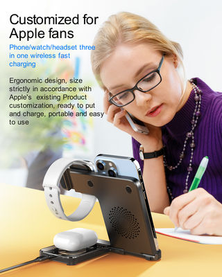 شارژر بی سیم 3 در 1 با تمام دستگاه های فعال Qi سازگار است، از جمله تلفن های هوشمند، ساعت های هوشمند و گوشواره ها.که برای بانک برق موبایل و بانک های برق که می توانند لپ تاپ ها را شارژ کنند مناسب است.، که باعث می شود آن را به یک لوازم ضروری برای افرادی که همیشه در حال حرکت هستند.