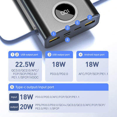 بانک برق PD 20W 22.5W با ABS PC در رنگ آبی و سفید پر جنب و جوش برای راه حل شارژ قابل حمل